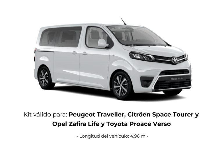 El kit camper Calafate es un kit especialmente diseñado para Peugeot Traveller, Citröen Spacetourer, Opel Zafira Life y Toyota Proace Verso (última generación).