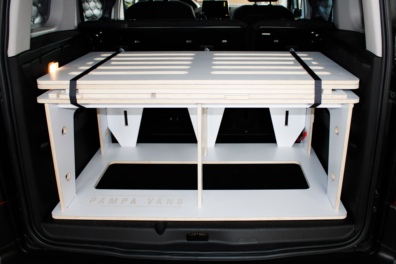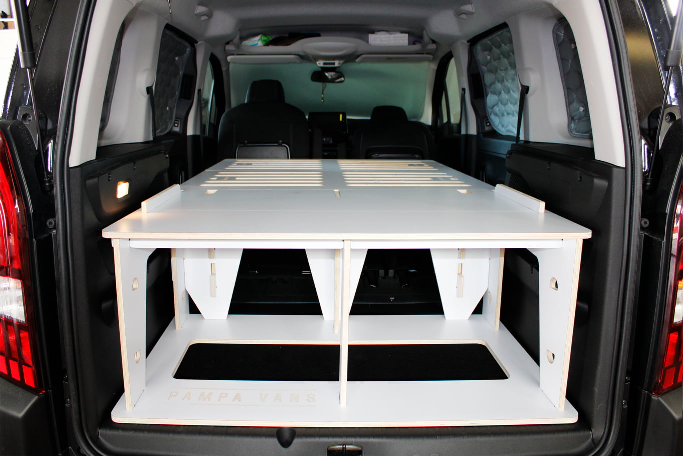 El kit camper Ushuaia Lite es un kit especialmente diseñado para Peugeot Rifter, Citröen Berlingo, Opel Combo Life y Toyota Proace City Verso (última generación).