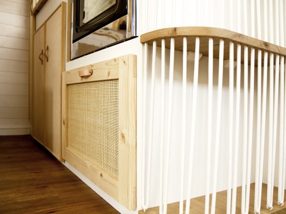 Nuestros muebles se construyen con contrachapado de chopo recubierto de HPL, ideal por su ligereza, resistencia al uso y facilidad de mantenimiento, perfecto para el día a día en ruta.