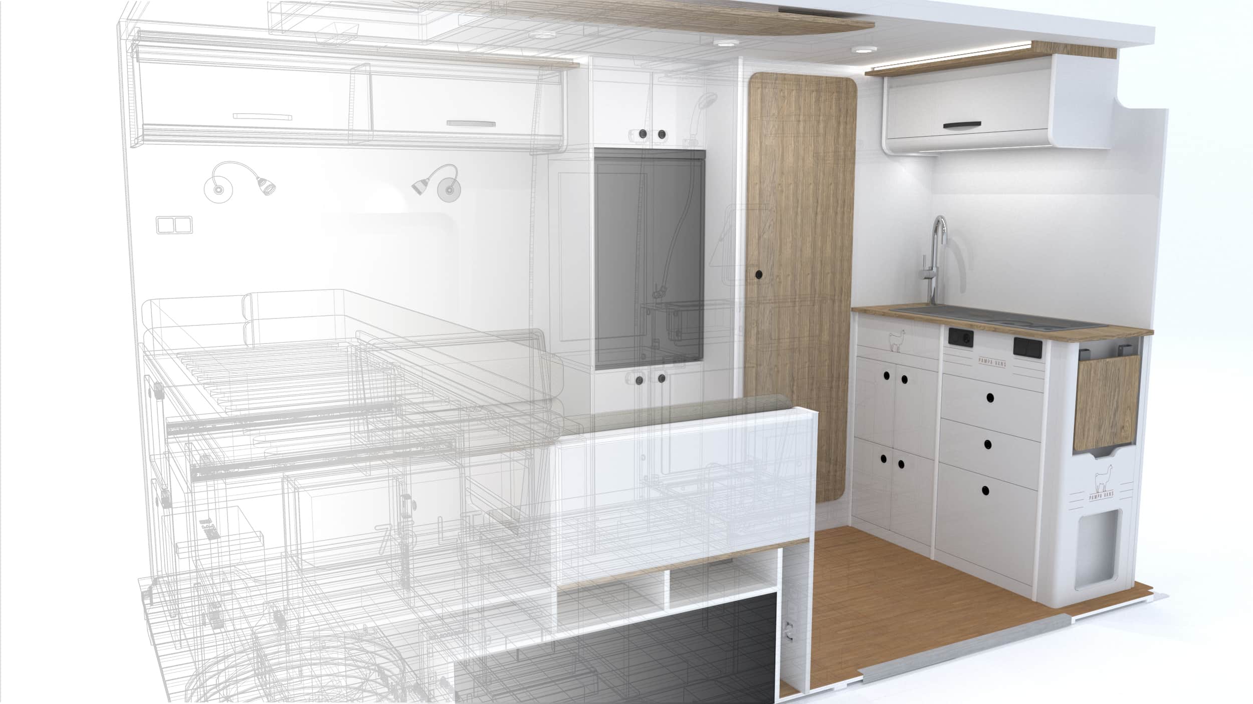 Gracias a nuestro sistema de modelado 3D, podrás ver una simulación realista de cómo quedará tu camper antes de iniciar la construcción. Esto te permite revisar detalles, hacer ajustes junto a nuestros diseñadores y tomar decisiones con total seguridad.